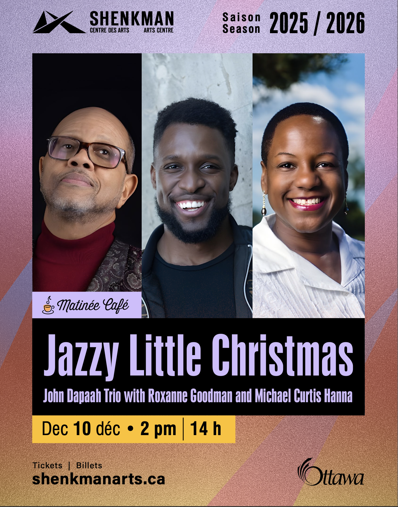 With the festive season in full swing, this show will have you feeling warm, cozy, and ready for the big day. Enjoy the sounds of the John Dapaah Trio, Michael Curtis Hanna and Roxanne Goodman in the intimate setting of the Richcraft Theatre. Their album Have Yourself a Jazzy Little Christmas was released in 2019.