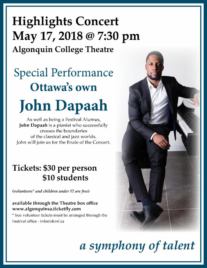 John Dapaah closes out the Ottawa Kiwanis Music Festival’s Highlights concert. CD’s will be available for purchase ($20).